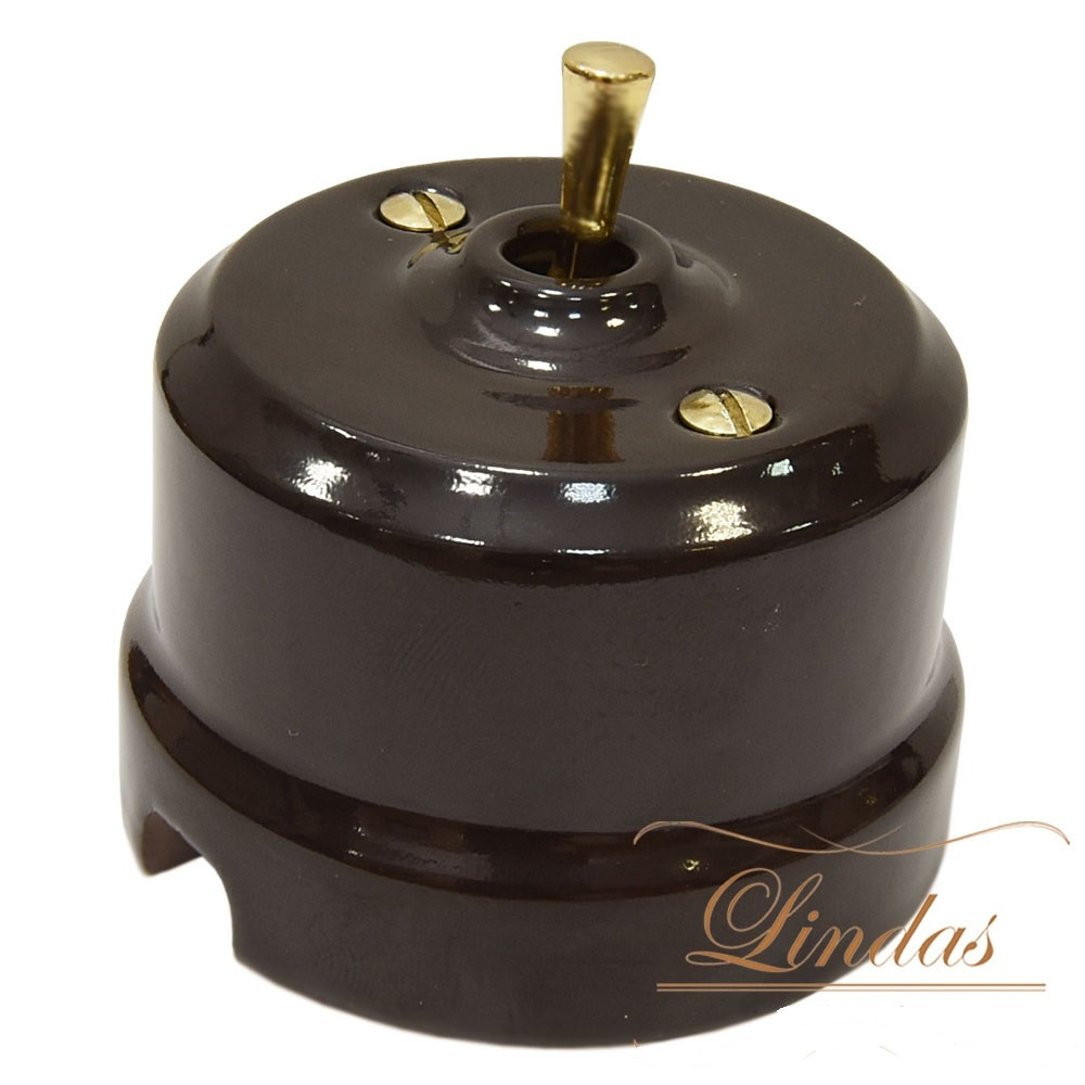 Перекрестный тумблерный ретро выключатель из коричневой керамики. Лаконичный дизайн в классическом стиле. Корпус из высококачественной керамики с гладкой глазированной поверхностью, надежный механизм с мягким приятным переключением.