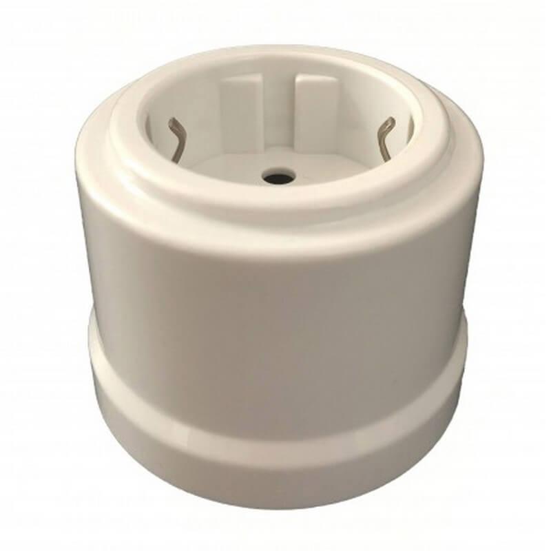 Ретро розетка с заземлением KBS-01 цвет белый представляет собой отличное решение для винтажных и классических интерьеров. Данная модель KBS-01 отвечает всем необходимым стандартам и ГОСТам, имеет сертификат качества. Дизайнерская розетка Keruda отлично сочетается в комплектации с наружной ретро проводкой, ретро изоляторами и винтажными выключателями. Основа из высококачественного материала благородного оттенка удовлетворит даже самый притязательный вкус.