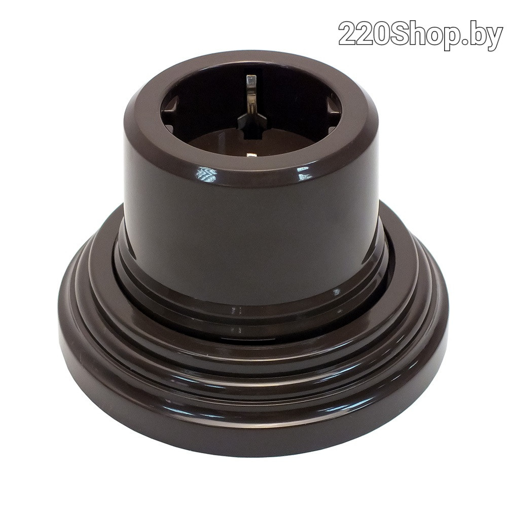 Ретро розетка с заземлением KBS-03 цвет коричневый представляет собой отличное решение для винтажных и классических интерьеров. Данная модель KBS-03 отвечает всем необходимым стандартам и ГОСТам, имеет сертификат качества. Дизайнерская розетка Keruda отлично сочетается в комплектации с наружной ретро проводкой, ретро изоляторами и винтажными выключателями. Основа из высококачественного материала благородного оттенка удовлетворит даже самый притязательный вкус.