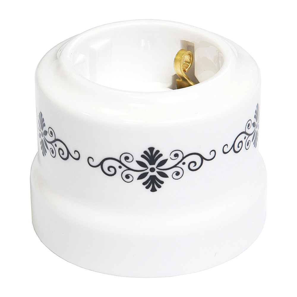 Розетка с заземляющим контактом Lindas Classic орнамент №4 (черный)