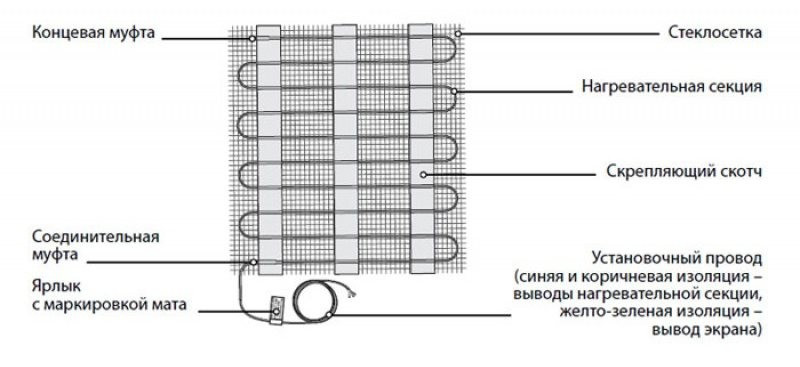 Конструкция нагревательного мата чрезвычайно простая в монтаже. |