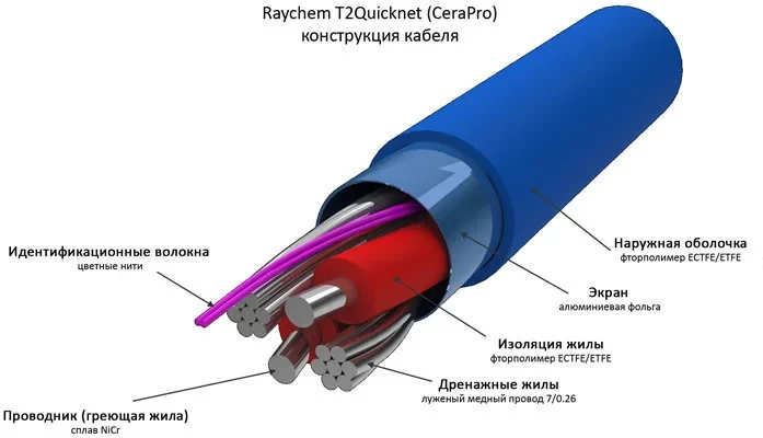 В качестве изоляции для греющих жил применяется фторполимер. |