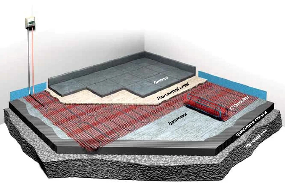 Теплый пол данной модели выполнен в виде двужильного мата. |