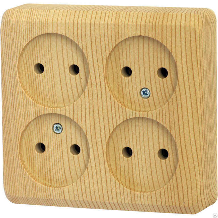 Розетка наружная Schneider Electric Этюд четырёхместная без з/к, сосна